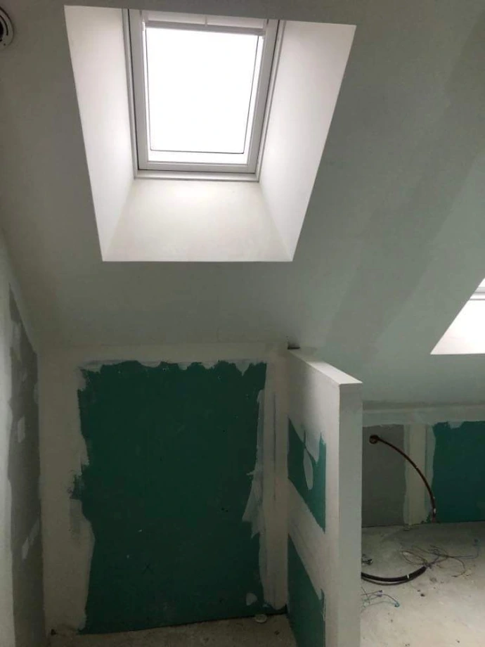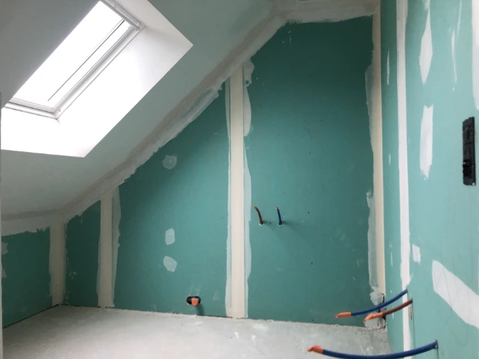 Je dirais que le travail de plaquiste représente à peu près 70% de mon activité. Les 30% restants relèvent de travaux de finitions divers que j'illustrerais en photo un peu plus tard. ( Peinture, revêtement sols, carrelage, parquet, changement de menuiseries, fenêtre, porte. )